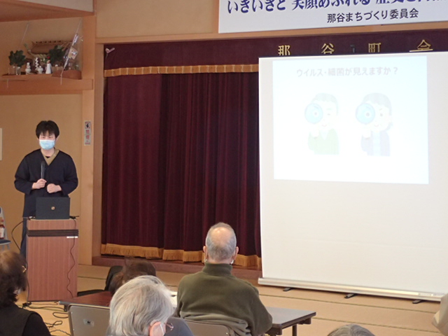 2月12日(木)10:10~11:00、いきいきサロン健康講話があり、感染管理認定看護師の根上剛が講師を行いました!