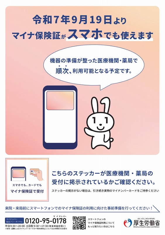 2025年9月19日(金)より、当院でもマイナ保険証がスマートフォンで使えるようになりました。
