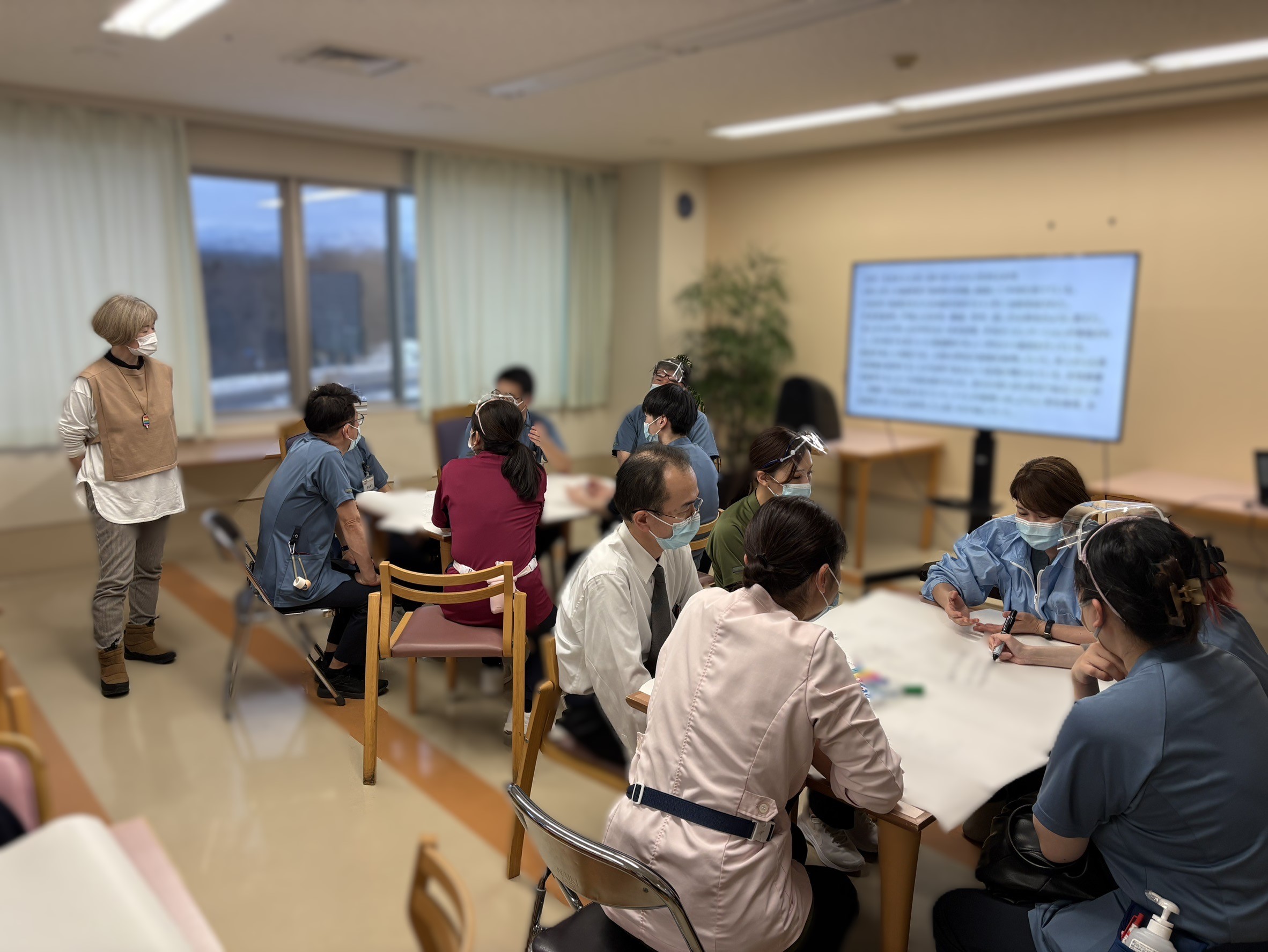 看護師をはじめとする多職種が参加し、声かけや配慮のあり方、環境面で工夫できることなど、「明日からできることは何か」についてそれぞれの立場から意見を出し合いました。